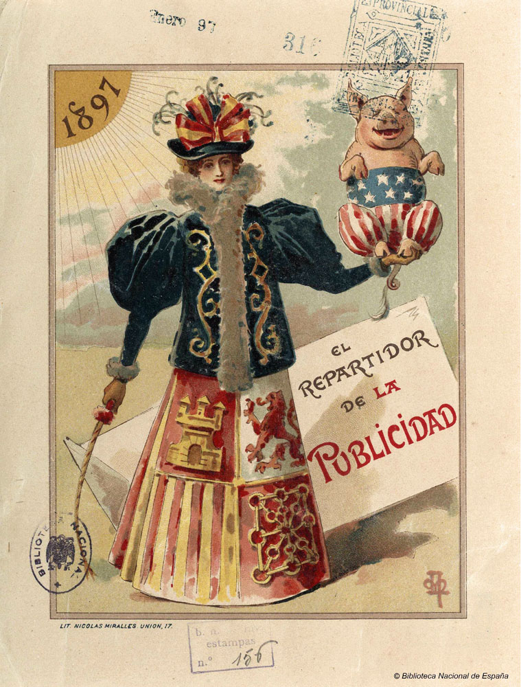 MESTRES, Apeles (Barcelona, 1854-1936). «El repartidor de la Publicidad», felicitación de Navidad del oficio, 1897. Disponible en: Biblioteca Digital Hispánica.