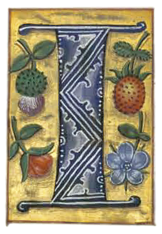 Esta maravillosa letra «I» adornada, es solo uno de miles de elementos decorativos que pueden encontrase en los siete tomos del manuscrito iluminado, conocido como Misal rico del cardenal Cisneros. Sorprende especialmente la decoración en zig-zag del asta, por su alienígena combinación de elementos abstractos y orgánicos.